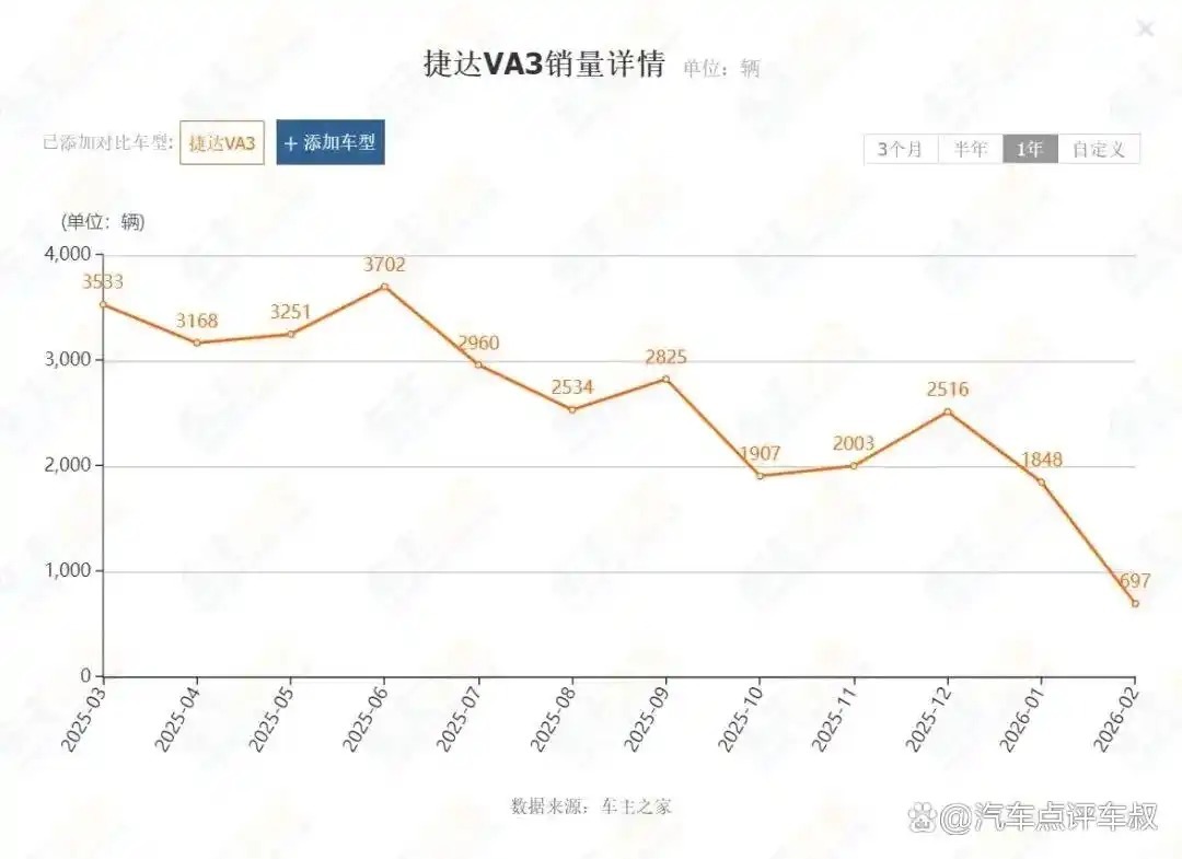 首先来看捷达VA3。如果说十年前,手握七八万预算,捷达几乎是绕不开的选择。但到了2026年,如果还想仅凭“捷达”这块金字招牌让消费者买单,结局大概率就像2月的销量数据一样惨淡。这款车的暴跌,核心在于“静态体验的极度落伍”与“动态价值的严重透支”。