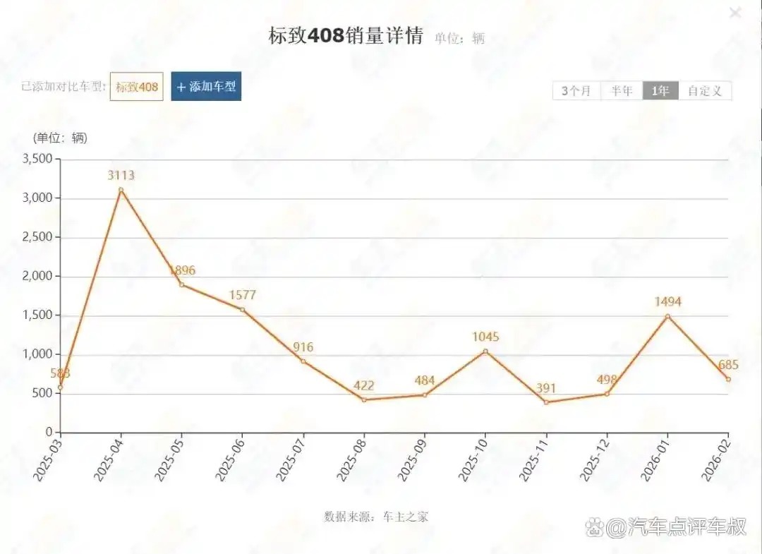 最后来看标致408。它的销量暴跌最令人唏嘘,却也最符合市场逻辑。作为法系车在中国市场的“独苗