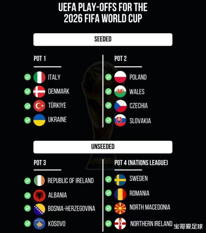 附加赛分组抽签仪式将会在11月20日晚上8点进行,其中最令人关注的球队自然是意大利了。意大利在2018年世预赛附加赛被瑞典淘汰,在2022年世预赛附加赛被北马其顿淘汰,如今他们又很有可能遇到其中的一队,真是令人期待啊!